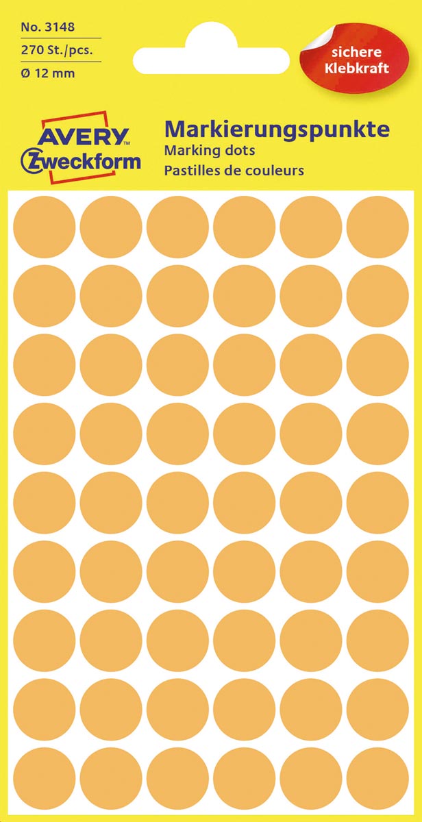 Avery Etiquettes ronds diamètre 12 mm, orange clair, 270 pièces