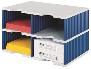 Detaillierte BeschreibungBlau/Grau, 4 Jumbo-Fächer: 2 Spalten / 2 ReihenBoden/obere Platte: Grau, Seitenwände: Blau,Material: Polystyrol, einfache Montage durch Stecksystem,erweiterbar und kombinierbar,Maße: (B)48,5 x (T)33,1 x (H)29,3 cm