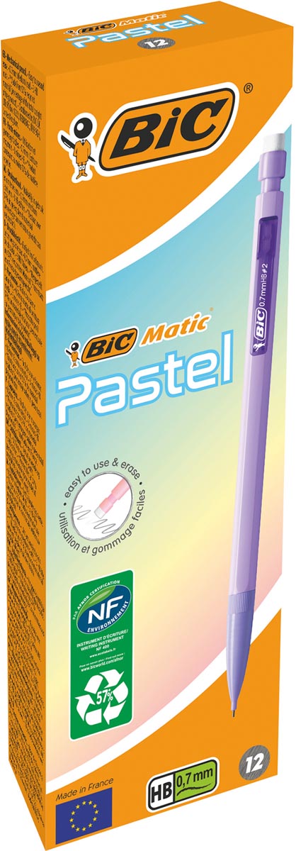 Detaillierte BeschreibungMine de crayon: 0,7 mm Contient 3 mines HB de 9 cm Corps en couleurs pastel assorties: rose, violet, vert et bleu Avec gomme Non rechargeable