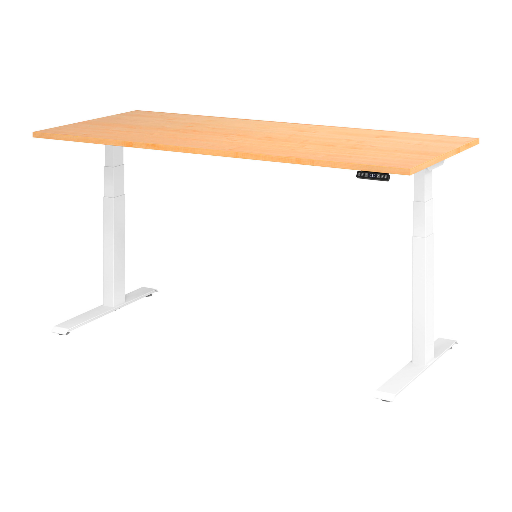 Épaisseur du plateau de table 2,5 cm. 2 moteurs intégrés dans les pieds.1 fiche à contact de protection. Piètement en C extrêmement solide. Réglage de la hauteur ± 5 mm 2 niveaux. Tube rectangulaire 9,5 x 6 cm. Vitesse de levage environ 36 mm/sec. Câble 3 m de longueur. Charge utile de la table: 80 kg dynamique, 140 kg statique. 8 Coloris du plateau de table: érable, gris, hêtre, blanc, noyer, béton, chêne, chêne ambré.
