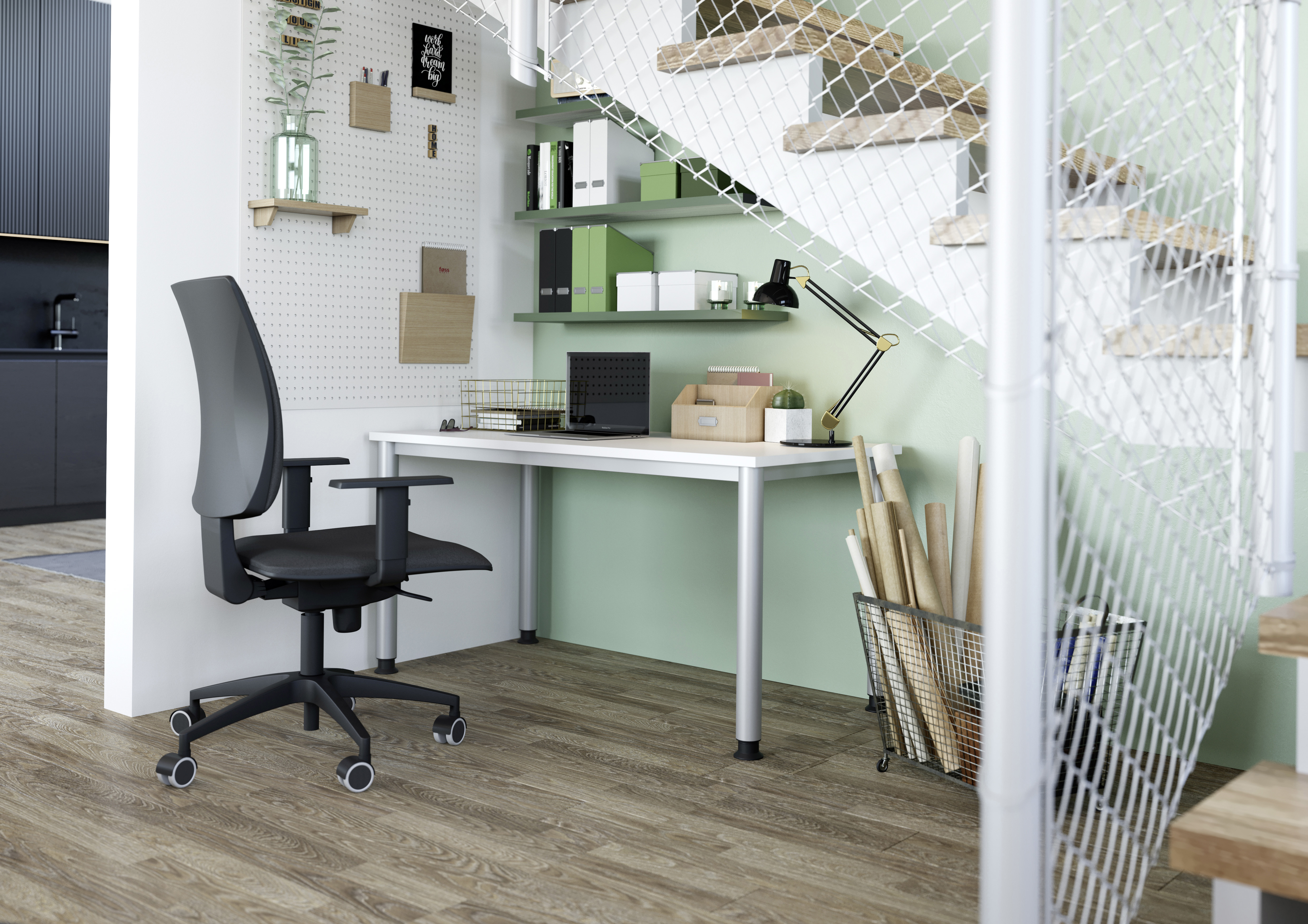 Hauteur de travail 68,5 - 81 cm. Réglage progressif de la hauteur. Épaisseur du plateau de table 2,5 cm. Piètement argenté (similaire à RAL 9006). Piètement colonne diamètre 6 cm, base ajustable diam. 7 cm. Cadre 2 x 4 cm (l x P). Plateau de table disponible en 2 couleurs: chêne ambre, blanc.