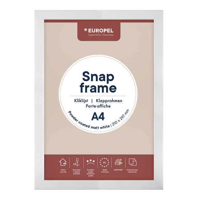 Optez pour l'élégance et la praticité du Cadre porte-affiche A4, blanc, un accessoire indispensable pour mettre en valeur vos documents et affiches dans votre espace professionnel. Avec son design sobre et contemporain, ce cadre s'intègre parfaitement dans tout type d'environnement et apporte une touche de raffinement à votre décoration.