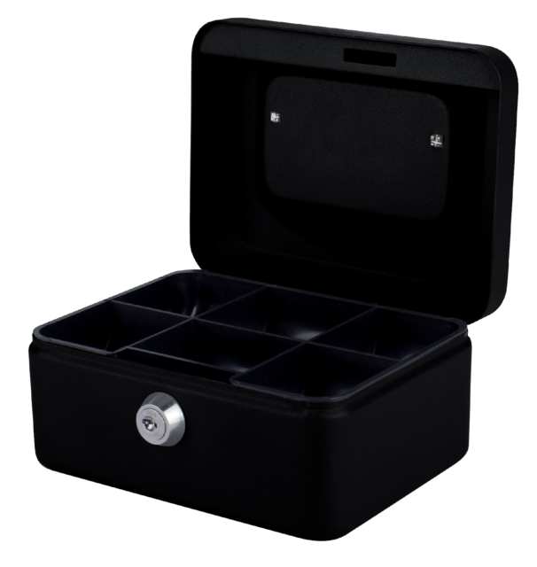 Detaillierte BeschreibungEn acier robuste, fermeture à cylindre de sécurité avec 2 clés, poignée escamotable, compartiment pour pièces de monnaie inclus, avec 6 compartiments