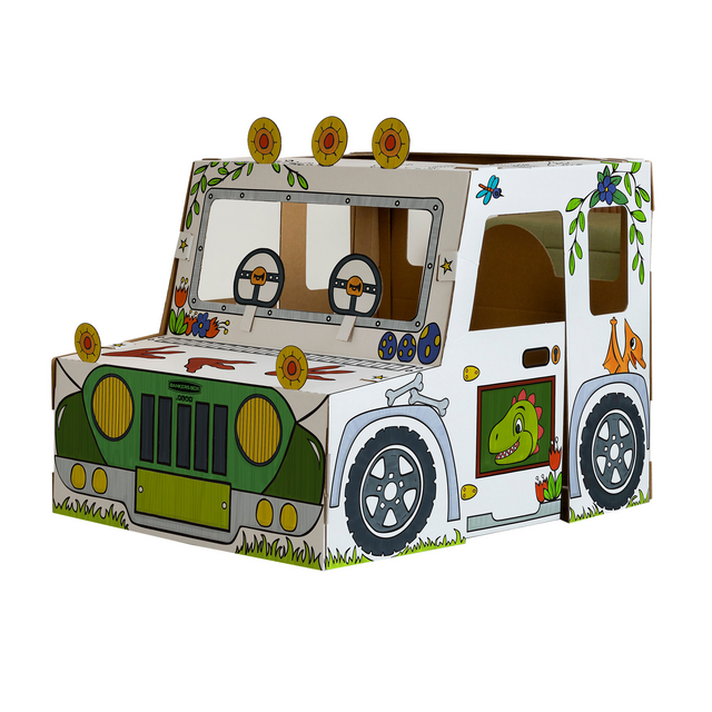 * Partez à l'aventure avec un camion dinosaure à colorier! * Riche en détails préhistoriques, il est prêt à être personnalisé par les enfants. * Parfait pour les jeux imaginatifs : chasse aux fossiles et missions de sauvetage de dinosaures. * Les portes interactives et les fenêtres découpées donnent vie au jeu. * Fabriqué en carton solide certifié FSC® et facile à assembler sans colle ni outils. * Sans danger pour les enfants : bords arrondis, imprimé avec des encres à base d'eau, entièrement certifié CE/UKCA. * Dimensions une fois assemblé (HxlxP) : 81,5x79,5x97,7cm.