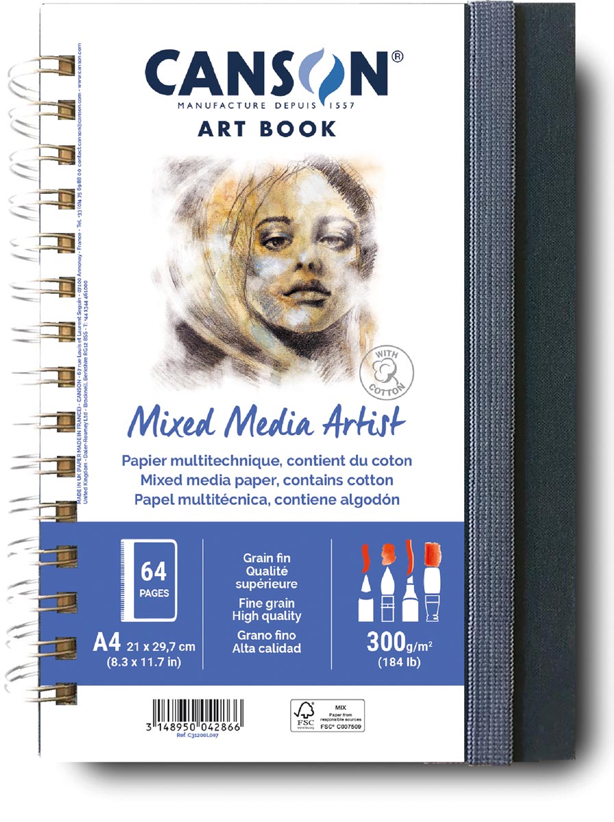 Detaillierte BeschreibungPapier à grain de 300 g/m². Bloc de 28 feuilles. A reliure spirale. Fermeture avec élastique. Convient aux techniques sèches et humides. Résistant aux grattages et gommages répétés. Certifié FSC.