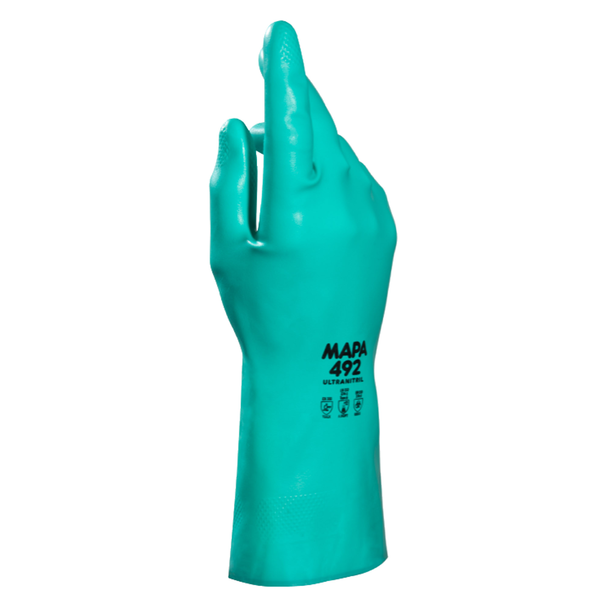 Detaillierte BeschreibungDer Ultranitril 492-Handschuh ist der am besten geeignet für den chemischen Schutz.Er bietet auch eine gute mechanische Beständigkeit.Komfortabler Handschuh dank seiner anatomischen Form und der Qualität des Innenfutters.Rutschfeste ReliefstrukturSilikonfrei, um Spuren, Fehler auf Blech und Glas vor dem Lackieren zu vermeiden.Normen EN 374-1, 374-5 und EN 388.Preis pro Paar.