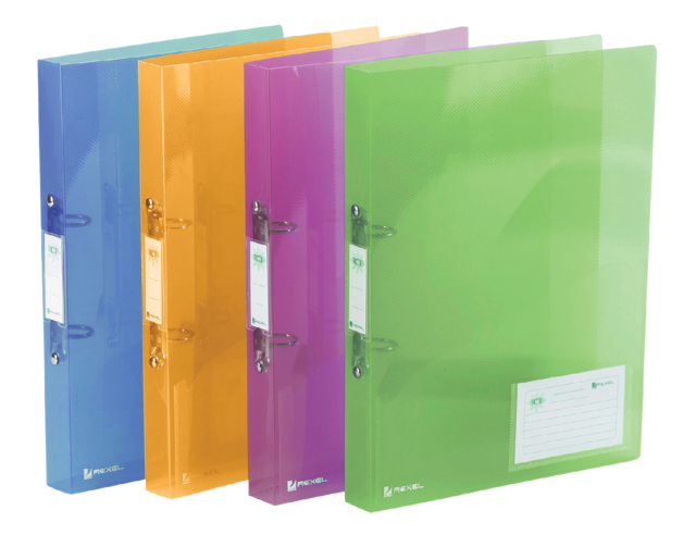 Le classeur Rexel Ice Standard se distingue par sa palette de couleurs assorties comprenant orange, turquoise, fuchsia et vert, ajoutant ainsi une touche de couleur et de modernité à votre bureau. Le dos est également équipé d'un porte-étiquette, facilitant l'identification du contenu pour un accès rapide et aisé à vos documents.