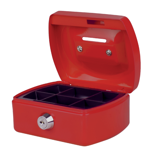 Detaillierte Beschreibung* Coffret caisse avec fente tirelire. * Serrure à cylindre avec 2 clés. * Couvercle avec une poignée chromée encastrée. Trieur à monnaie en plastique avec 6 compartiments. * Facile à fixer sur une surface plane.