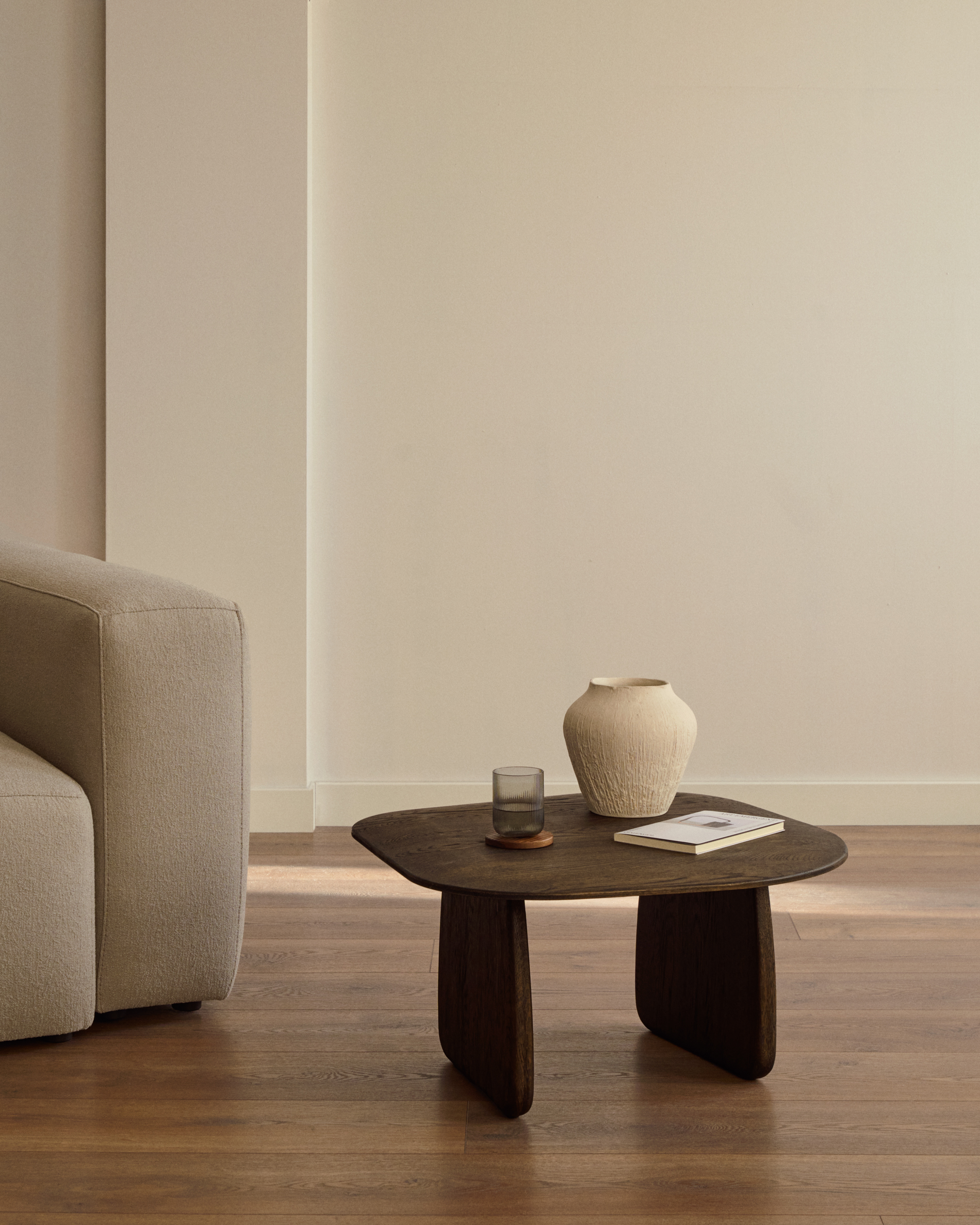 Couchtisch aus Eichenholz, dunkle Ausführung.