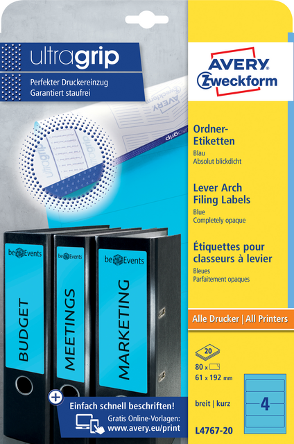 L'un des principaux atouts de ces étiquettes Avery Zweckform réside dans leur technologie ultragrip. Celle-ci assure une adhésion optimale sur vos classeurs, vous garantissant une utilisation sans tracas.