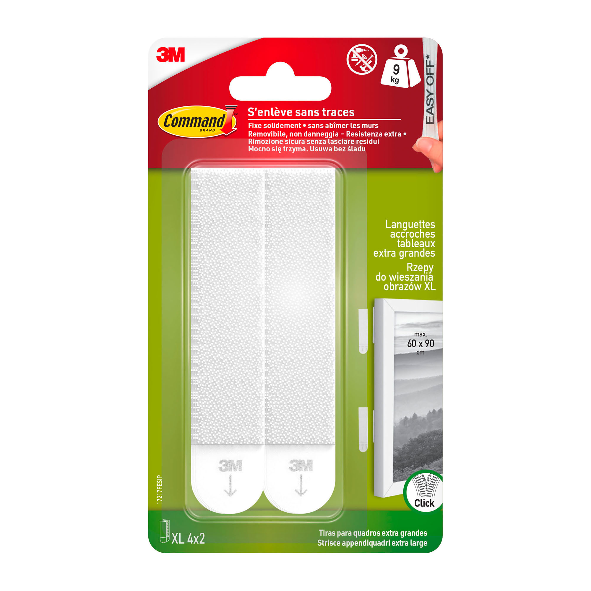 Klebestreifen Command 3M Größe XL bis 9 kg - Blister von 4 x 2 Stück