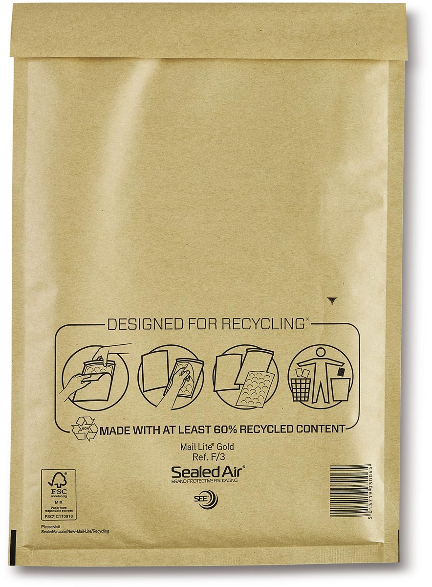 Mail Lite enveloppes à bulles d'air, or, F/3, 220 x 330 mm, boîte de 50 pièces