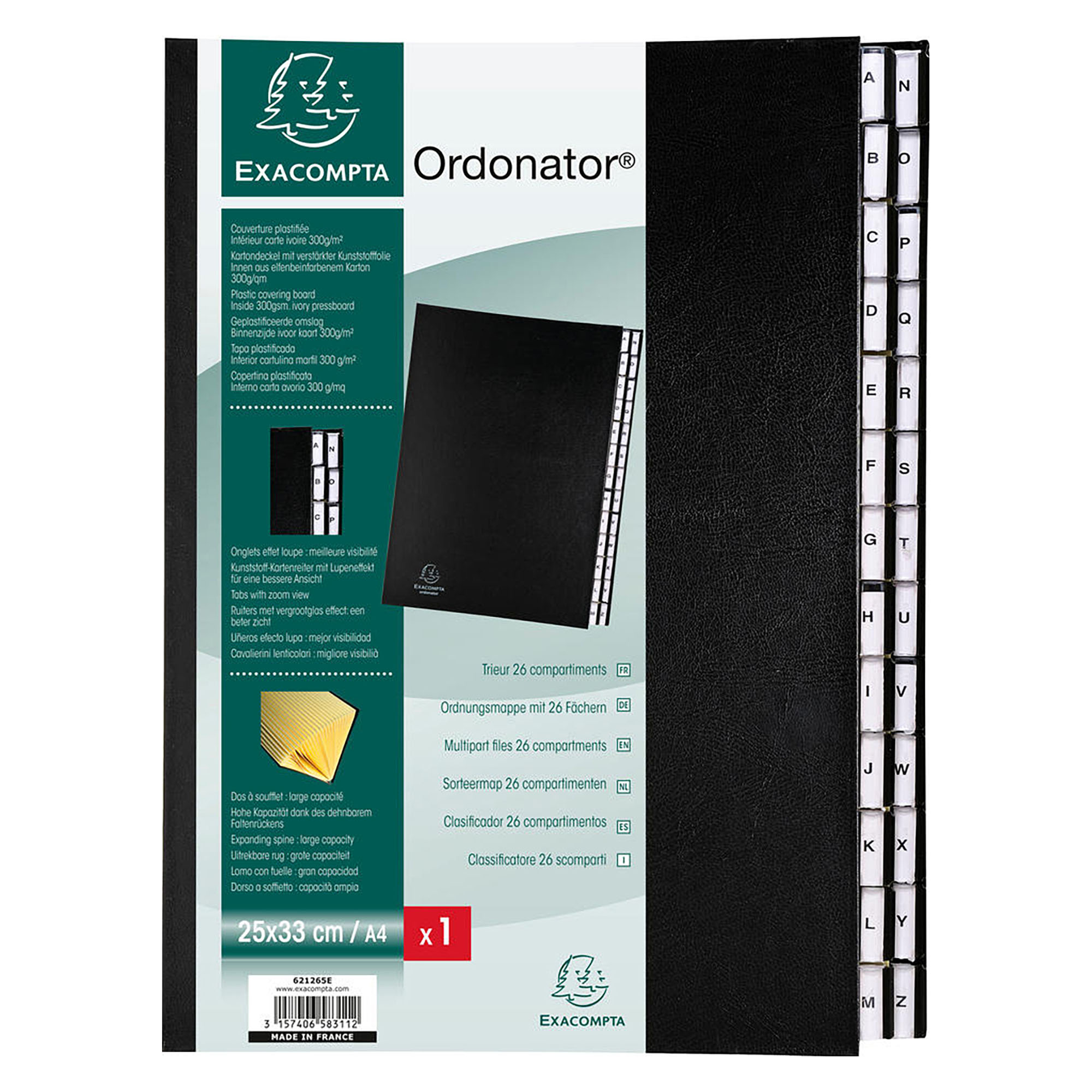 Couverture rigide, carton fort 19/10è recouvert de PVC grain cuir. Planches d'étiquettes prédécoupées fournies. Intérieur carte 300 gr/m². Dos extensible à soufflets.