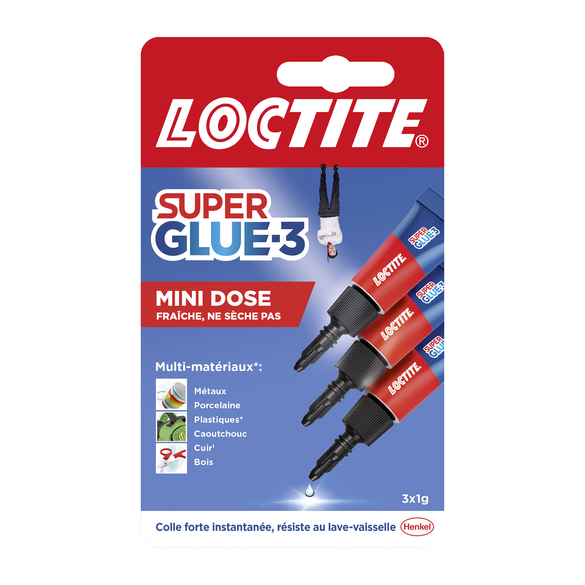 Dieser Loctite Superkleber haftet an allem: Porzellan, Kunststoff, Metall, Holz... Ein paar Tropfen auf die zu klebende Oberfläche geben, dann 10 Sekunden lang fest drücken, und fertig ist es! Ein Verschluss ist vorgesehen, um zu verhindern, dass der Klebstoff austrocknet.