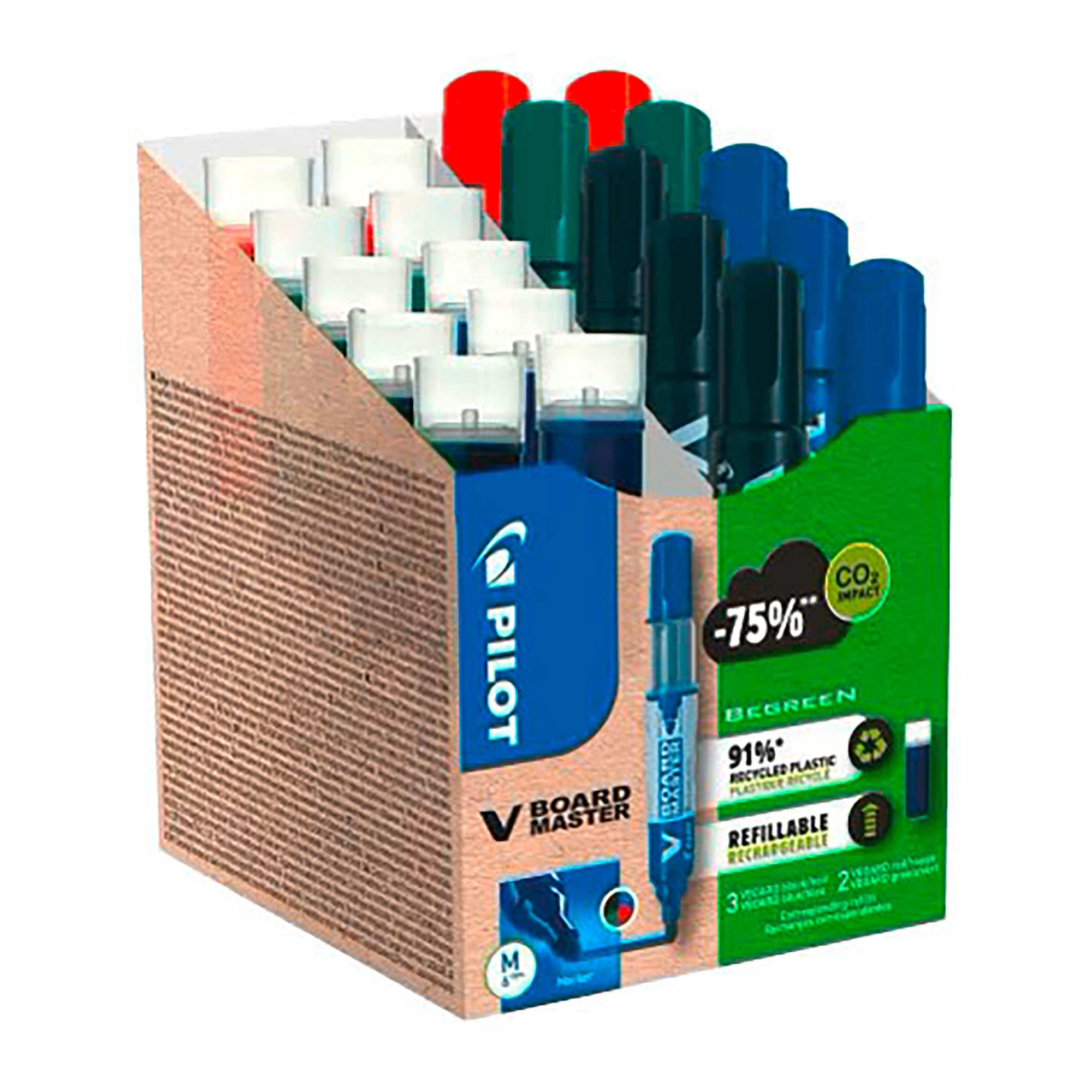 Set mit 10 Markern + 10 Nachfüllungen. Dieses Produkt ist umweltfreundlich, da es zu mindestens 90 % aus recyceltem Material hergestellt wurde.