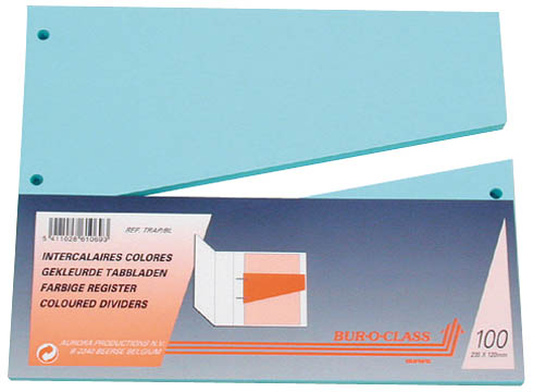 Mit seinen Maßen: Länge 23 cm, Breite der Lochseiten 11,7 cm, gegenüberliegende Seite 6,4 cm, wird dieser Trennstreifen sicherlich seinen Platz in Ihrem Ordner finden.
