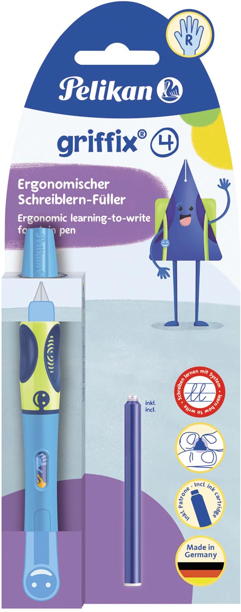 Pekikan Griffix stylo plume, sous blister, pour les droities, bleu - vert