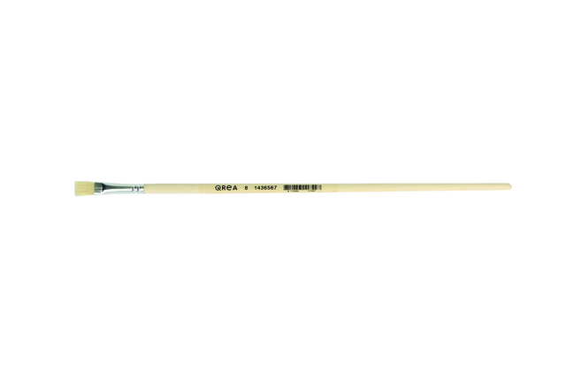 Pinceau en soie de porc Qrea n° 8 - 9,4mm.Découvrez la polyvalence du pinceau en soie de porc Qrea n° 8, un outil indispensable pour tous les artistes et bricoleurs. Sa forme plate, ses soie de porc robustes et sa virole en tôle de haute qualité lui confèrent une excellente maîtrise et une grande longévité. Le manche en bois clair tient bien dans la main, même en cas d'utilisation prolongée. Idéal pour l'application de peintures, d'apprêts, de vernis, de colles et même de techniques telles que l'empâtement, ce pinceau peut être utilisé dans d'innombrables applications et rend tout projet plus soigné et plus professionnel.Caractéristiques :* Type : pinceau n° 8.* Largeur du pinceau : 9,4mm.* Longueur des poils : 13mm.* Type de poils : soie de porc* Forme : plate.* Manche : bois brut avec manche en moucheté rugueux.* Virole : tôle de haute qualité.* Convient pour : tous types de peintures, apprêts, vernis, colles et techniques d'empâtement.* Origine : fabriqué en Allemagne.