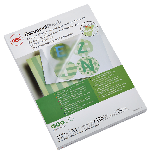 Anciennement commercialisée sous la référence IB581038 d'Ibico et R41618 de Rexel, la Pochette à plastifier DocumentPouch A3, 250 microns de Gbc est un choix judicieux pour tous les professionnels désirant protéger et valoriser leurs documents de manière efficace et esthétique.