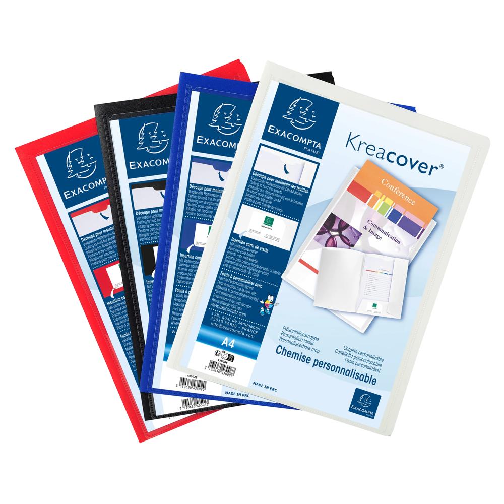 Kreacover ist die personalisierbare Ablageserie von Exacompta. Flexible Präsentationsmappe aus PP. Ideal für Angebote, Tagungen, Seminare und Bewerbungen.
