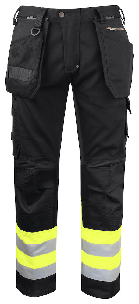 Hüfthose mit ergonomisch gepolsterter Passe für optimalen Komfort. Zwei Holstertaschen, die in die Seitentaschen gesteckt werden können, mit zusätzlichen Fächern und interner Cordura®-Verstärkung. Gesäßtaschen mit verstärkter Innenseite. Verstärkte vordere Zollstocktasche, abnehmbare Gesäßtaschen, Taschenknopf und Beintasche mit beweglichem Fach. Stretch-Material im Schritt. vorgeformte Knie mit internen Taschen für Knieprotektoren, in zwei Höhen verstellbar. Reflektierende Cordura®-Details.