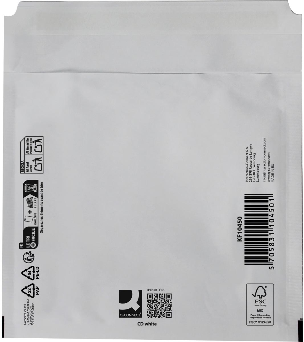 Q-CONNECT enveloppes à bulles d'air, blanc, CD, 200 x 175 mm, boîte de 100 pièces