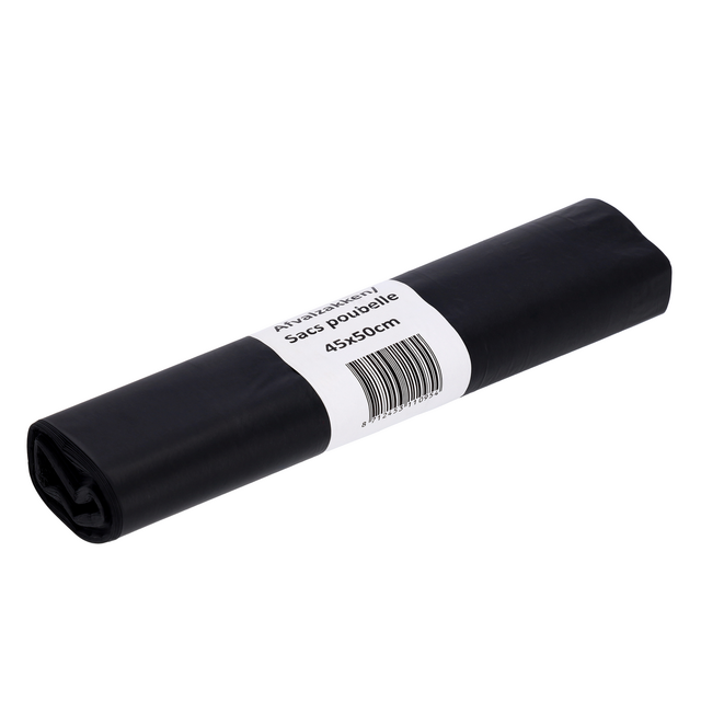 Sac poubelle Cleaninq 45x50cm LDPE Recycled T25 15L noir rouleau 20 pièces