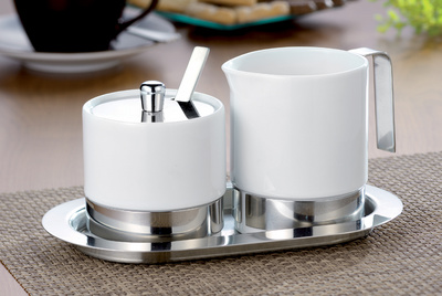 Detaillierte BeschreibungEn porcelaine et acier inoxydable, le set comprend: un pot àcrème de 0,25 litre, un pot à sucre de 0,20 litre, aveccuillère appropriée, plateau de service d'env. 200 x 110 mm,adapté au lave-vaisselle