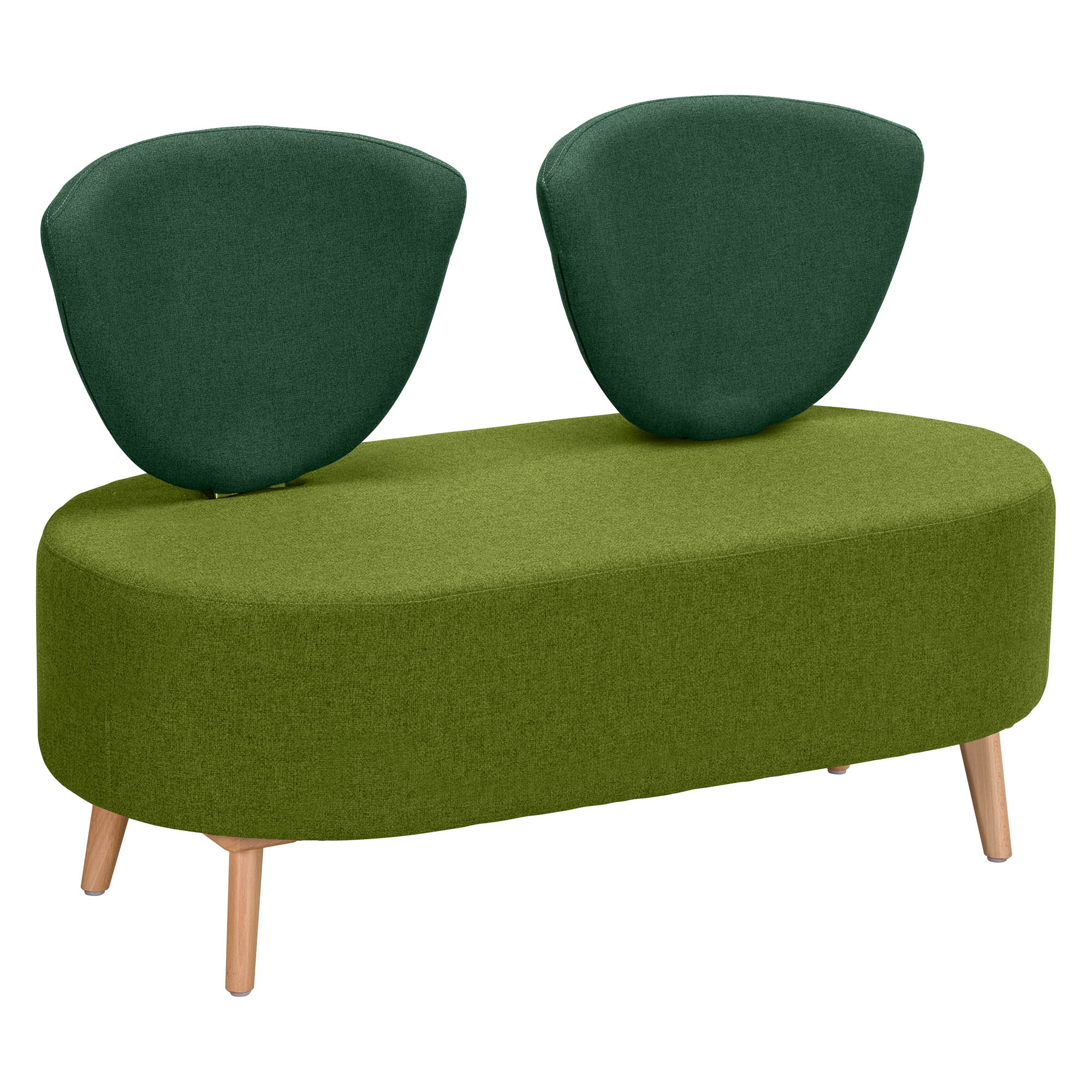 Matière : dossier et assise 100% tissu Trevira cs. Structure en hêtre multiplis. Piètement hêtre.
