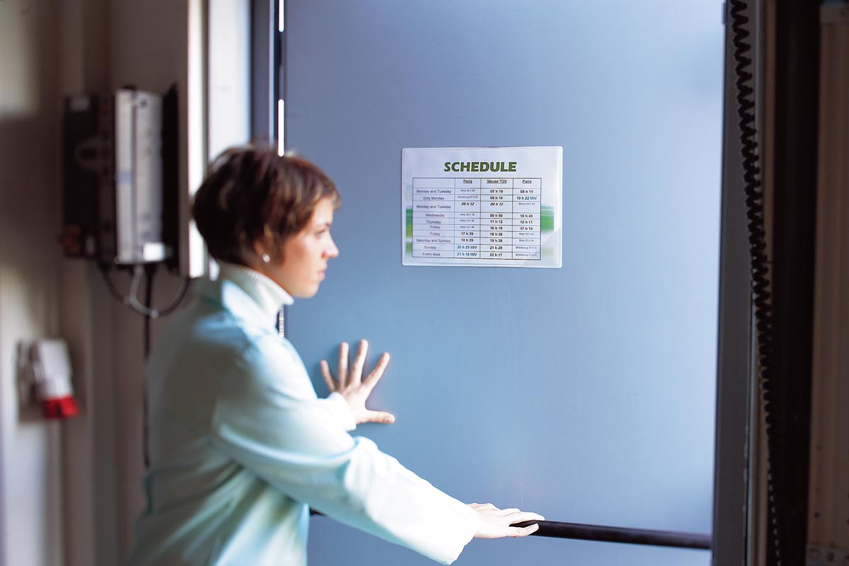 Conçue en PVC antireflets, cette pochette d'affichage protège vos documents tout en garantissant une lecture aisée et sans reflets gênants. De plus, la fermeture à coin facilite l'insertion et l'extraction rapide des documents, vous permettant de mettre à jour vos informations en un clin d'œil.