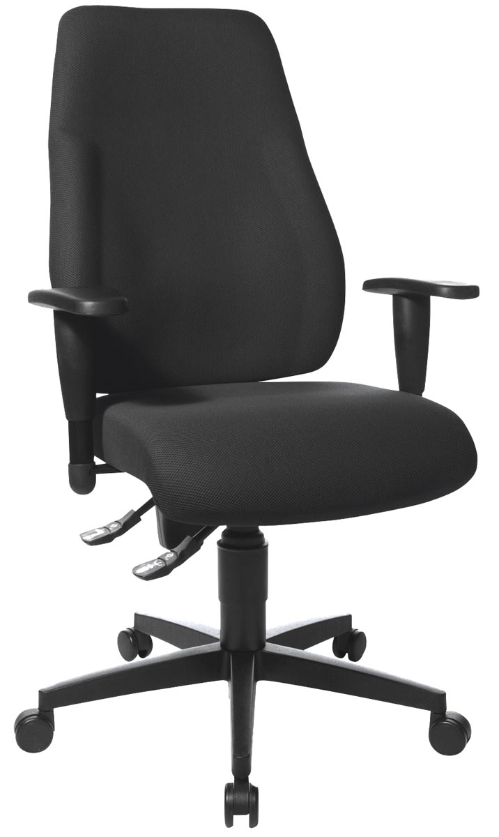 Wie funktioniert die Sitness®-Technologie?Bei Sitness® sind Rückenlehne und Sitz dynamisch miteinander verbunden.Dieses Design erzeugt ein völlig neues Sitzgefühl, das die Rückenmuskulatur kontinuierlich aktiviert und stärkt, ohne dass man darüber nachdenken muss!Die Vorteile von Sitness®?- stärkt den Rücken und die Wirbelsäule- entlastet die Bandscheiben- fördert die Blutzirkulation- verbessert die Konzentration- steigert die ProduktivitätBürostuhl "Lady Sitness"• Bezug: 100 % Polyester• Damendrehstuhl mit pendelndem Sitz• Rückenlehne mit spezieller Form im Rückenbereich - Frauen benötigen in dieser Zone mehr Unterstützung• atmungsaktiver Sitz in 7 verschiedenen Zonen mit unterschiedlichen Härtegrade• Druckentlastungsfeder und optimale Belüftung• Spezieller Fitnesssitz mit Body-Balance-Tec-Gelenk für eine dreidimensionale Sitzfläche• Sitzhöhenverstellung durch Toplift• doppelte Sicherheitsrollen mit gewichtsabhängiger Bremsfunktion, für Teppichböden• Nylonfuß in Schwarz• Rückenhöhe: 580 mm• Sitzabmessungen: (B)460 x (T)450 x (H)420 - 530 mm• höhenverstellbare Armlehnen des Typs "K2" mit Softpad-Bezug• SCHWARZER Sitz, andere Farben auf Anfrage erhältlich!Empfohlene Sitzdauer: 7 Stunden und mehr- für den intensiven Einsatz im Büro oder im Privatbereich empfohlen- hoher Sitzkomfort- sehr ergonomische Ausstattung- getestet gemäß den Normen EN 1335 1-3 und GS