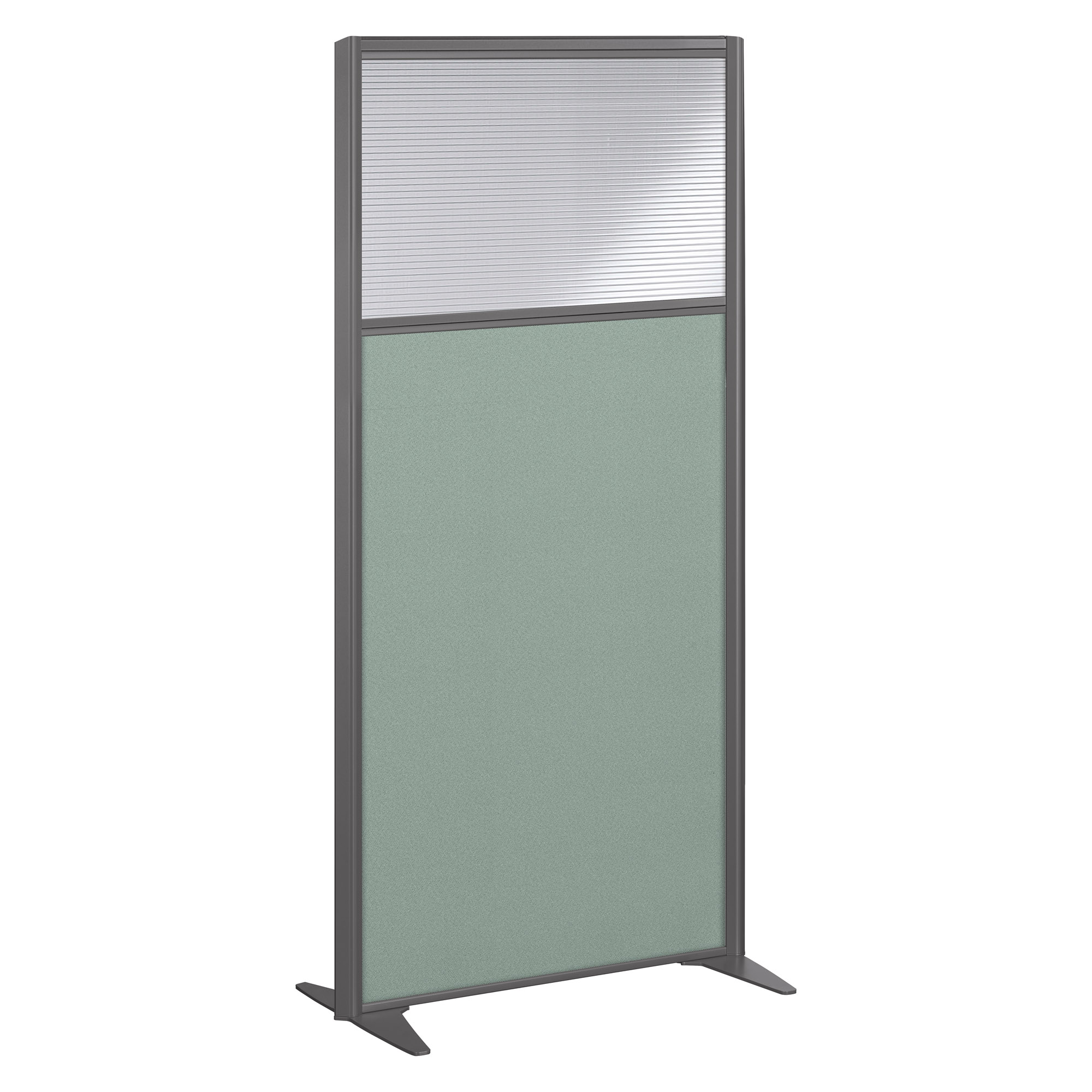 Robust und ästhetisch. Vollfläche: Hochdichte Spanplatten, perfekt steif, 12 mm dick mit 100 % recycelbarem Stoffbezug. Verglaste Fläche, alveolar dekoratives Altuglas, 10 mm dick. Anthrazitfarbener Rahmen. Praktisch: Multidirektionale Verbindung durch Metallprofile. Einstellbare Füße zum Ausgleich von Bodenunebenheiten. Optionales Stabilisierungsfußgestell.