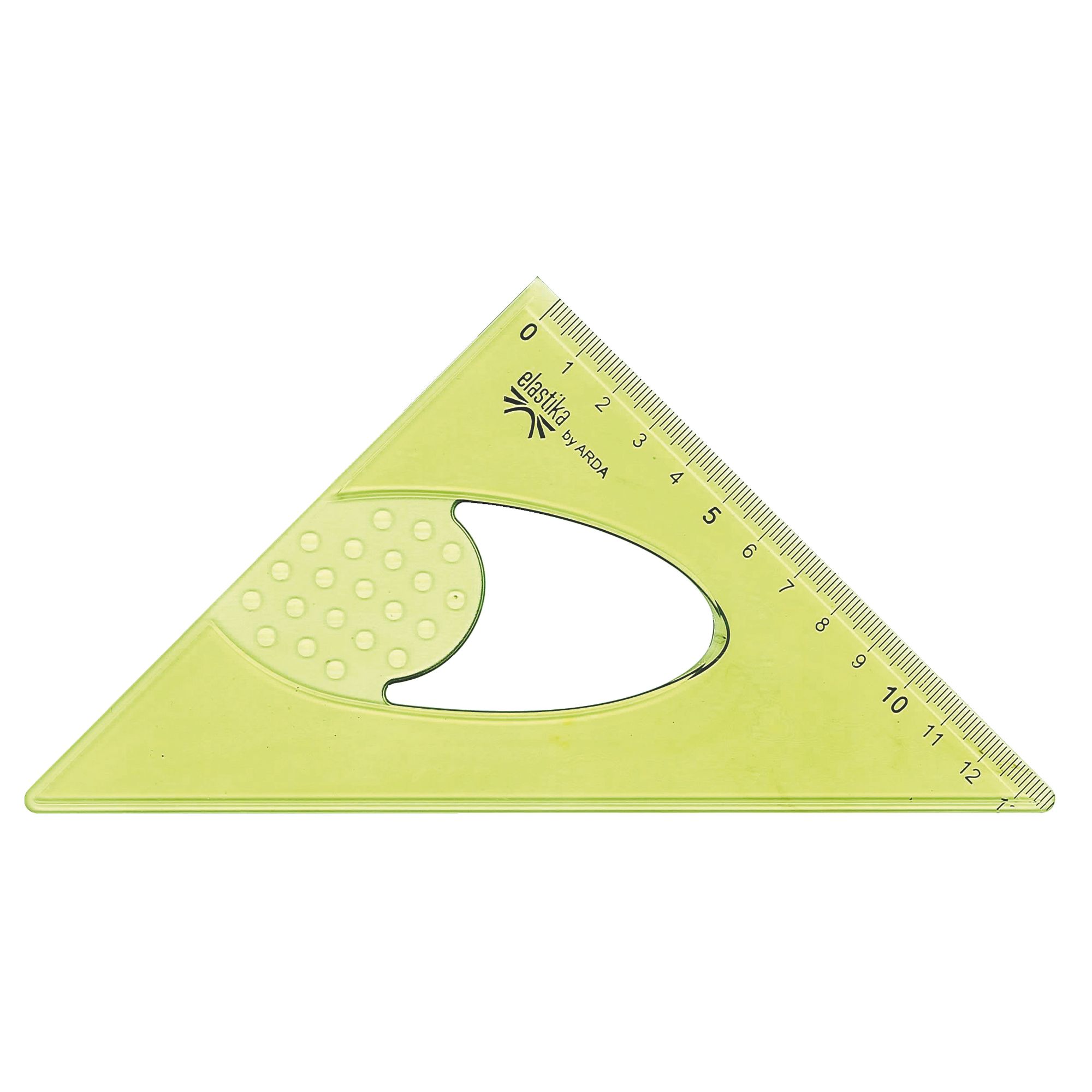 Detaillierte BeschreibungZeichendreieck 45 Grad. Hohe Qualität. Gradverteilung in mm, dauerhaft geätzt. Anti-Fleck Kanten. Farbe grün.