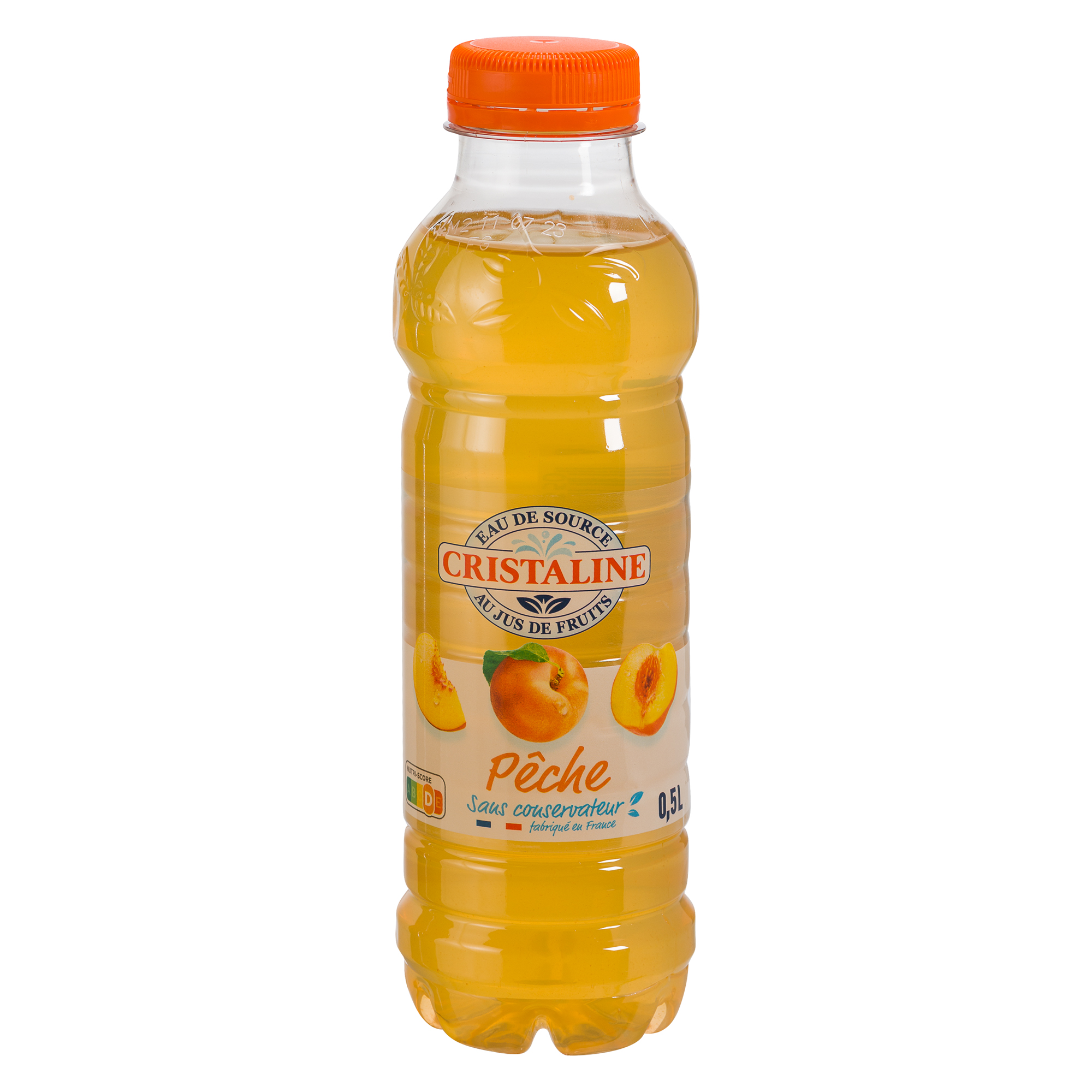 Fruchtig lecker, entdecken Sie die subtile Harmonie mit 90 % natürlichem Quellwasser von Cristaline kombiniert mit Fruchtsaft aus Konzentrat und natürlichem Aroma.