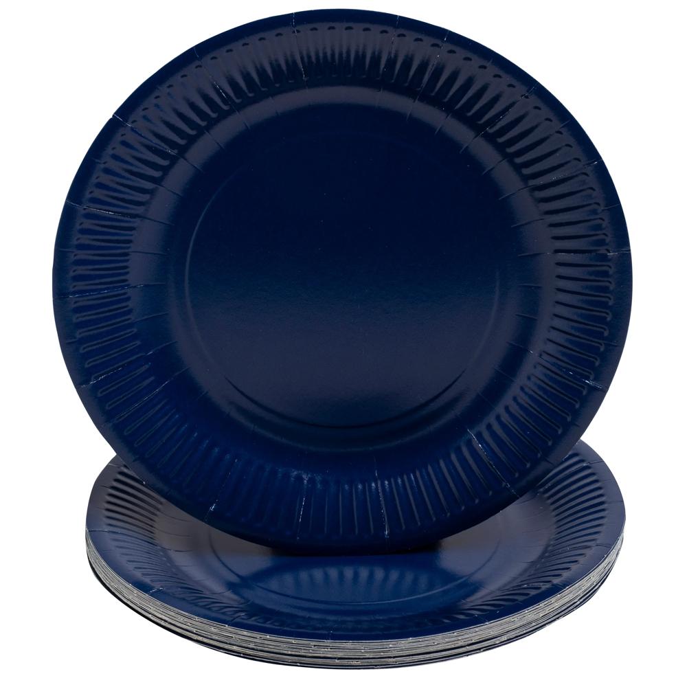 The film-wrapped pack contains 20 round cardboard plates with a diameter of 23 cm.