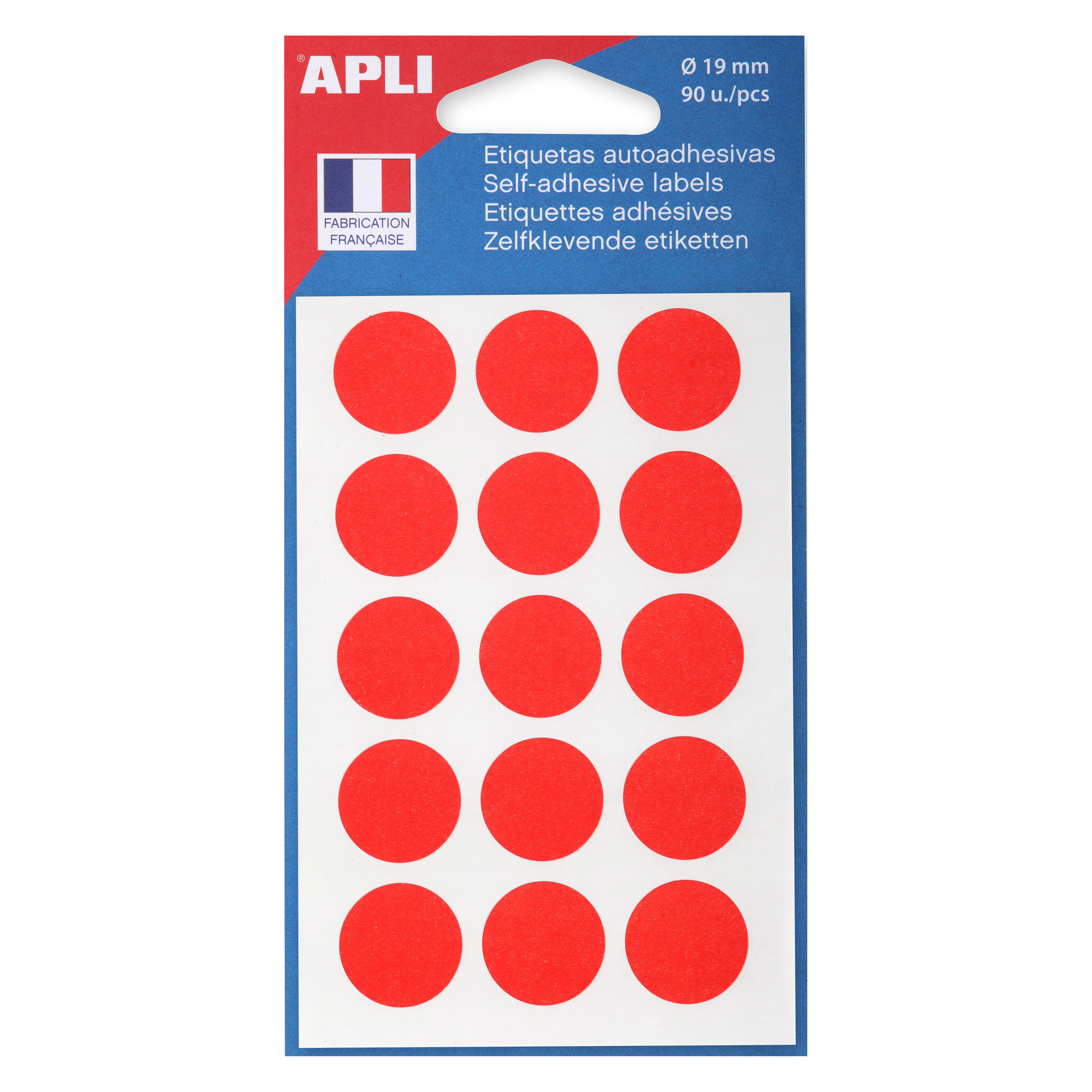 Detailled descriptionPerfect to mark everything.4 available colours: green, blue, red, yellow.Pack of 90 adhesive labels with diameter 19 mm.