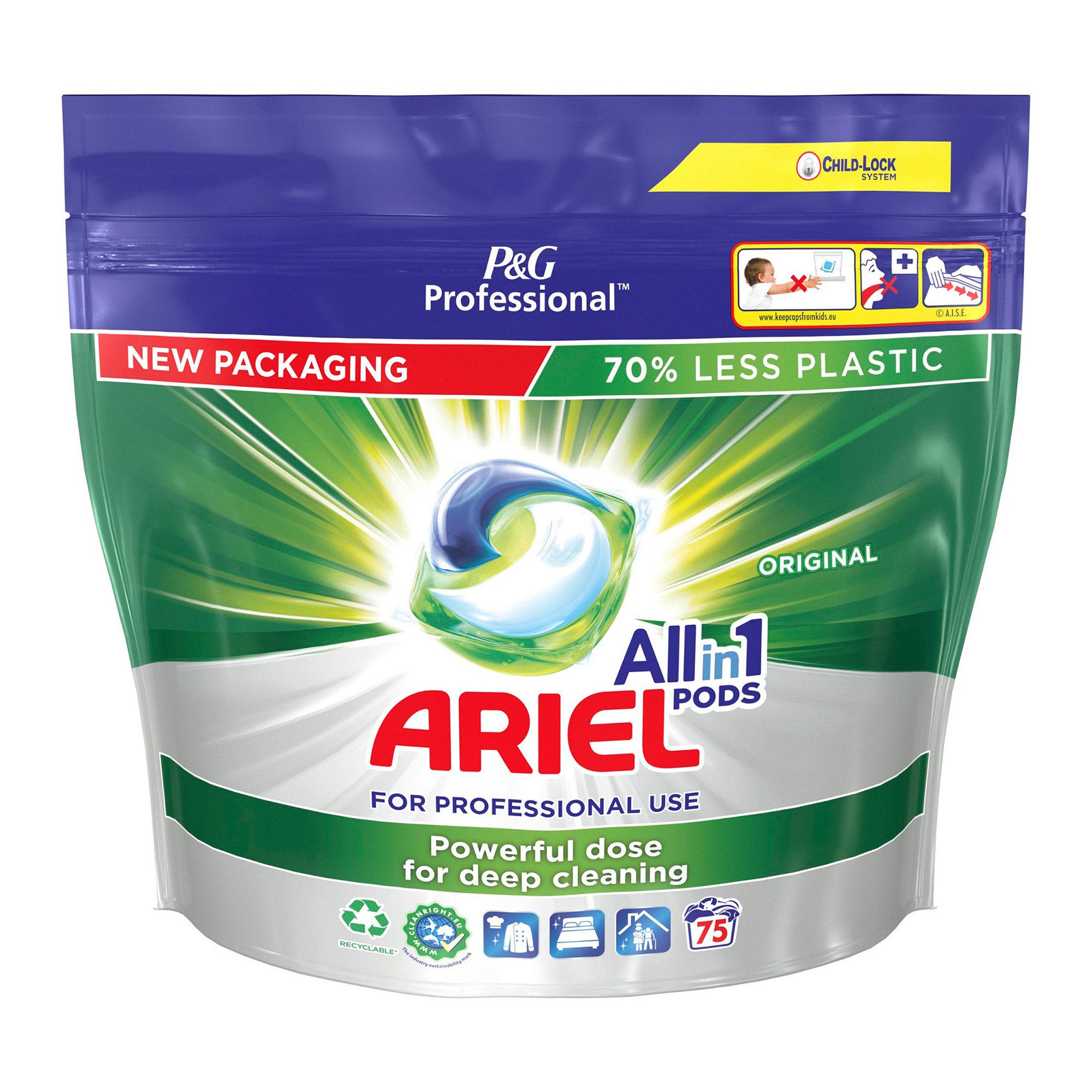 Pratique et efficace contre le retrait des tâches, Ariel Professsional All in 1 Pods permet des résultats exceptionnels au 1er lavage grâce à sa nouvelle formule améliorée.