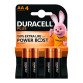Pack of 4 Power Boost 150% batteries - LR06/AA.- Ideal performance: These Duracell AA batteries are ideal for powering your everyday devices, with a lifespan up to 150% longer* thanks to the POWER BOOST** active ingredients