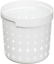 Detailled descriptionMatériau: PP recyclé, avec trous diamants, volume: 1,3 L, diamètre: 133 mm, hauteur: 126 mm