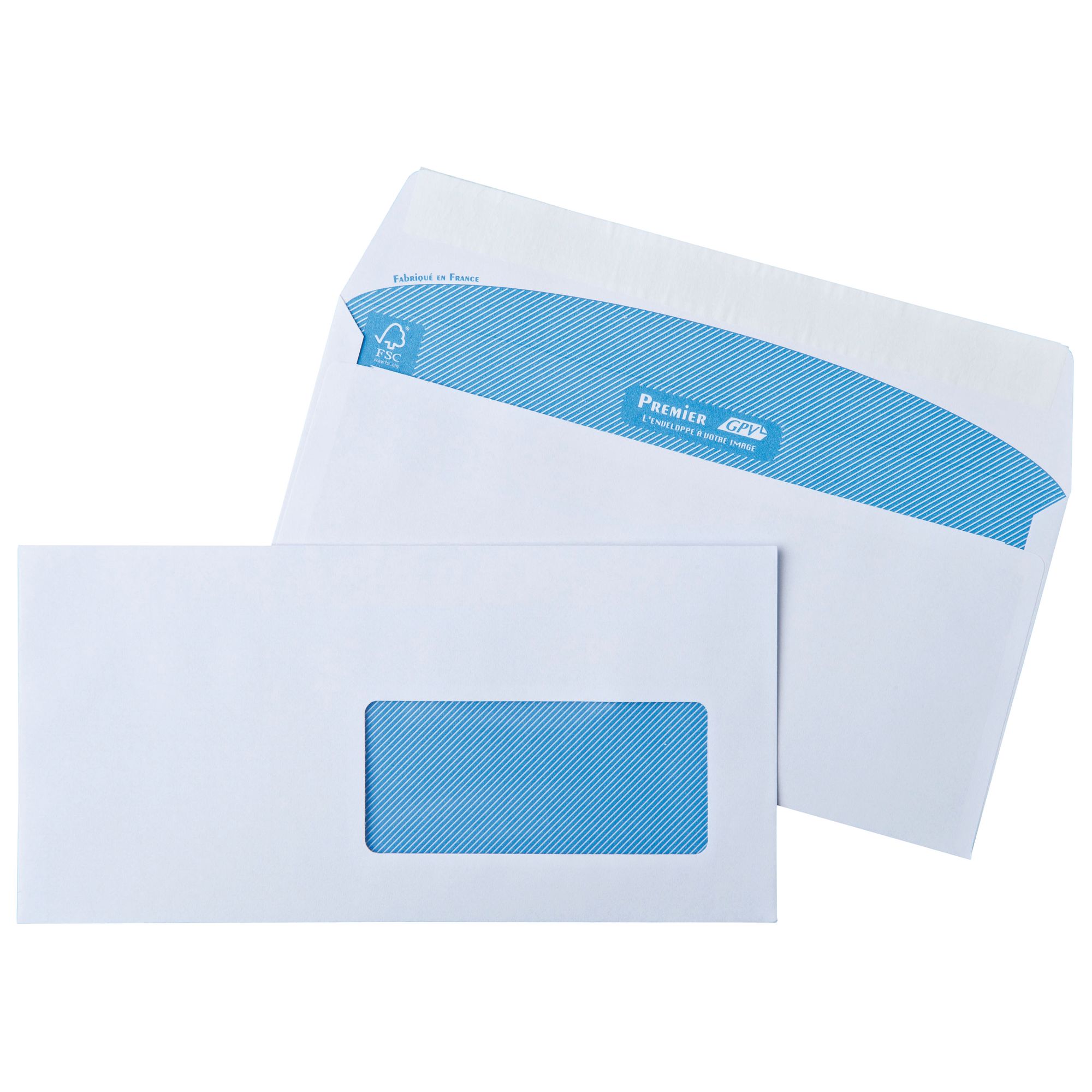 Superior white vellum paper, 80 g. Printable with laser and inkjet printer. Special window, for the passage through the printer. Self-adhesive with protection strip. Dimensions: 110 x 220 mm. With window: 45 x 100 mm. Box of 100 envelopes. FSC-certificate. Personalize your envelopes thanks to the free software on www.gpv-france.fr.
