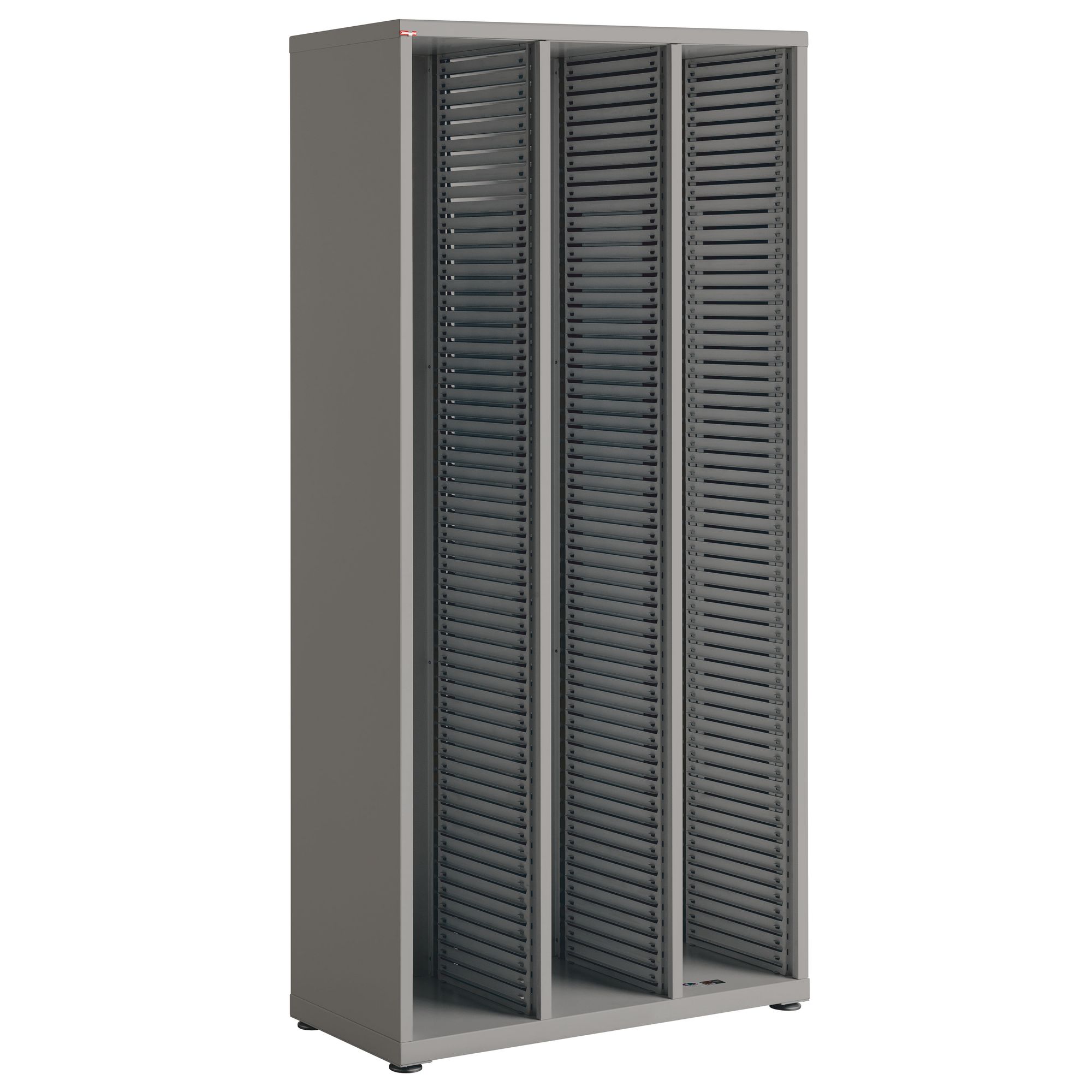 Empty cabinet to be equipped with 6 sets of drawers in antishock polystyrene with labels and label holders. 2 set drawers = 1 column: set of 15 drawers of 6 cm or set of 30 drawers of 3 cm.