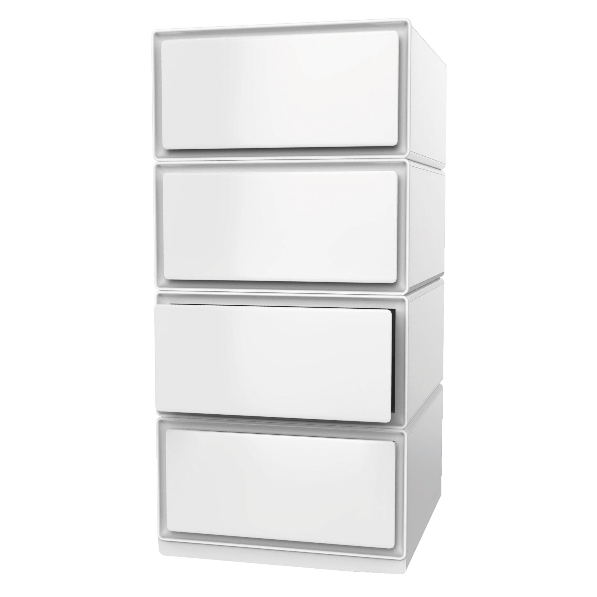 Structure and facade in shining ABS. 3 models: Mobile drawer cabinet, 4 drawers: 2 drawers for pen-trays (pen-tray not included), dimensions of the drawer: H 6 x W 32,5 x D 40,5 cm and 2 horizontal drawer, dimensions of the drawer: H 13,5 x W 32,5 x D 40,5 cm. Mobile drawer cabinet, 4 different drawer: one horizontal drawer, dimensions of the drawer: H 13,5 x W 32,5 x D 40,5 cm, one vertical drawer for budget files, dimensions of the drawer: H 33 x W 13 x D 40,5 cm, two drawers, dimensions of the drawer: H 13,5 x W 13 x D 40,5 cm. Fixed drawer cabinet, 4 drawers: 4 horizontal drawers, dimension of the drawer: H 13,5 x W 32,5 x D 40,5 cm. Choice between 5 different colours. Assemble elements included, easy to assemble.