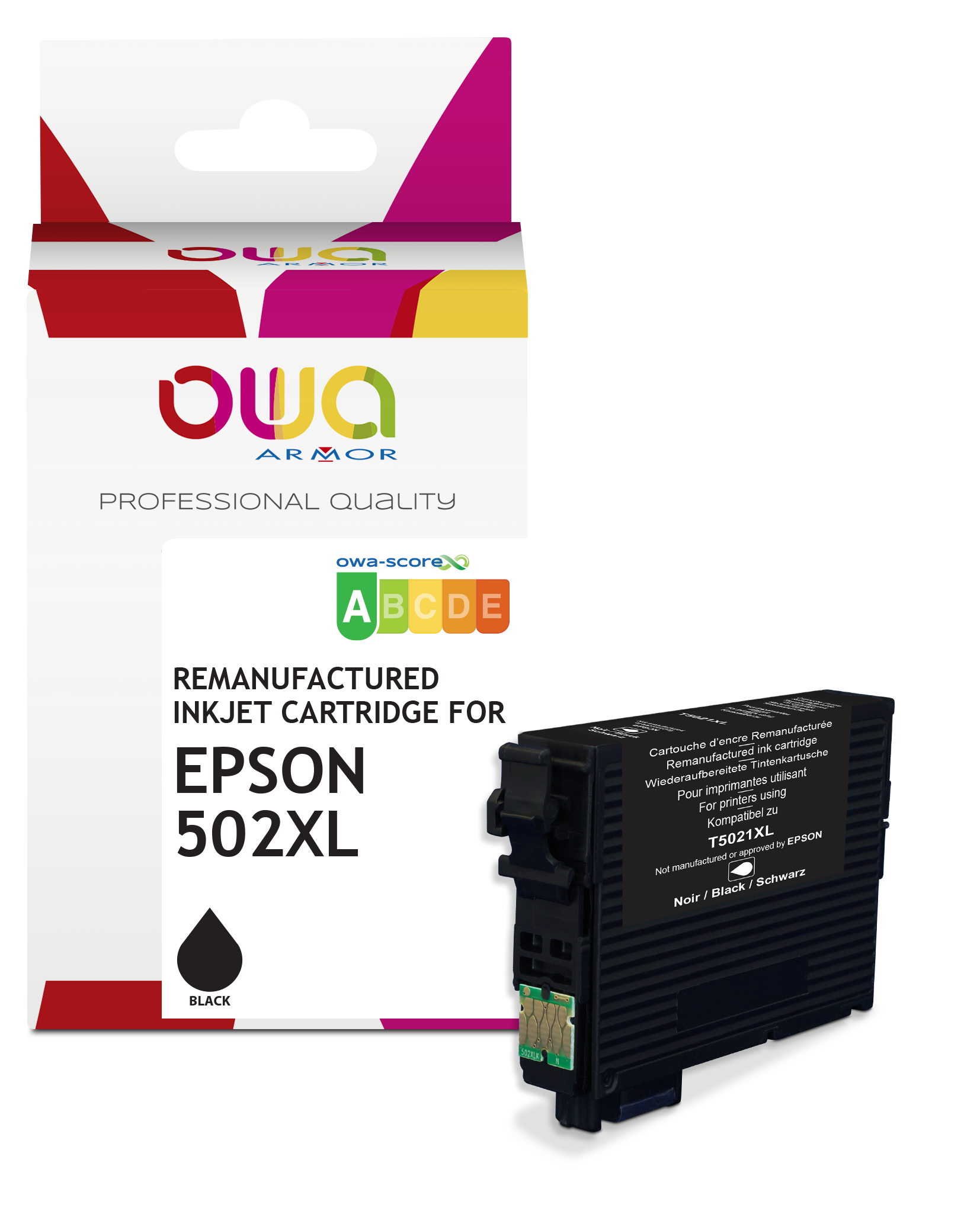 Other cartridges with the same compatibilitiesPack of 4 remanufactured OWA ink cartridges - high capacity - Black Cyan Magenta Yellow - for EPSON 502XLfrom€88.95 ex VATEpson 502 cartridge black for inkjet printer from€25.23 ex VATEpson 502 cartridge separate colors for inkjet printer from€9.85 ex VATEpson 502 pack of 4 cartridges 1 black and 3 colors for inkjet printer 6 reviews€51.75 ex VATEpson 502XL cartridge high capacity black for inkjet printer from€38.72 ex VATEpson 502 XL cartridge high capacity separate colors for inkjet printer from€21.63 ex VAT