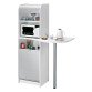 This piece of furniture features a fixed shelf of 55 x 41 cm, a compartment for a coffee machine or microwave, 3 adjustable height inner shelves, and an integrated external small table.