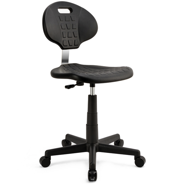 Detailled descriptionChaise de travail Tarente Medium Assise et dossier en PU Hauteur réglable par vérin à gaz Piétement en plastique noir Roulettes freinées Garantie 2 ans Largeur d'assise : 46cm Profondeur d'assise : 43,5cm Hauteur d'assise : 45 -55cm.