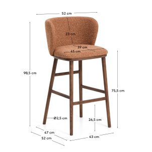 Ciselia thick terracotta chenille stool with ash wood legs and walnut tone finish 75 cm