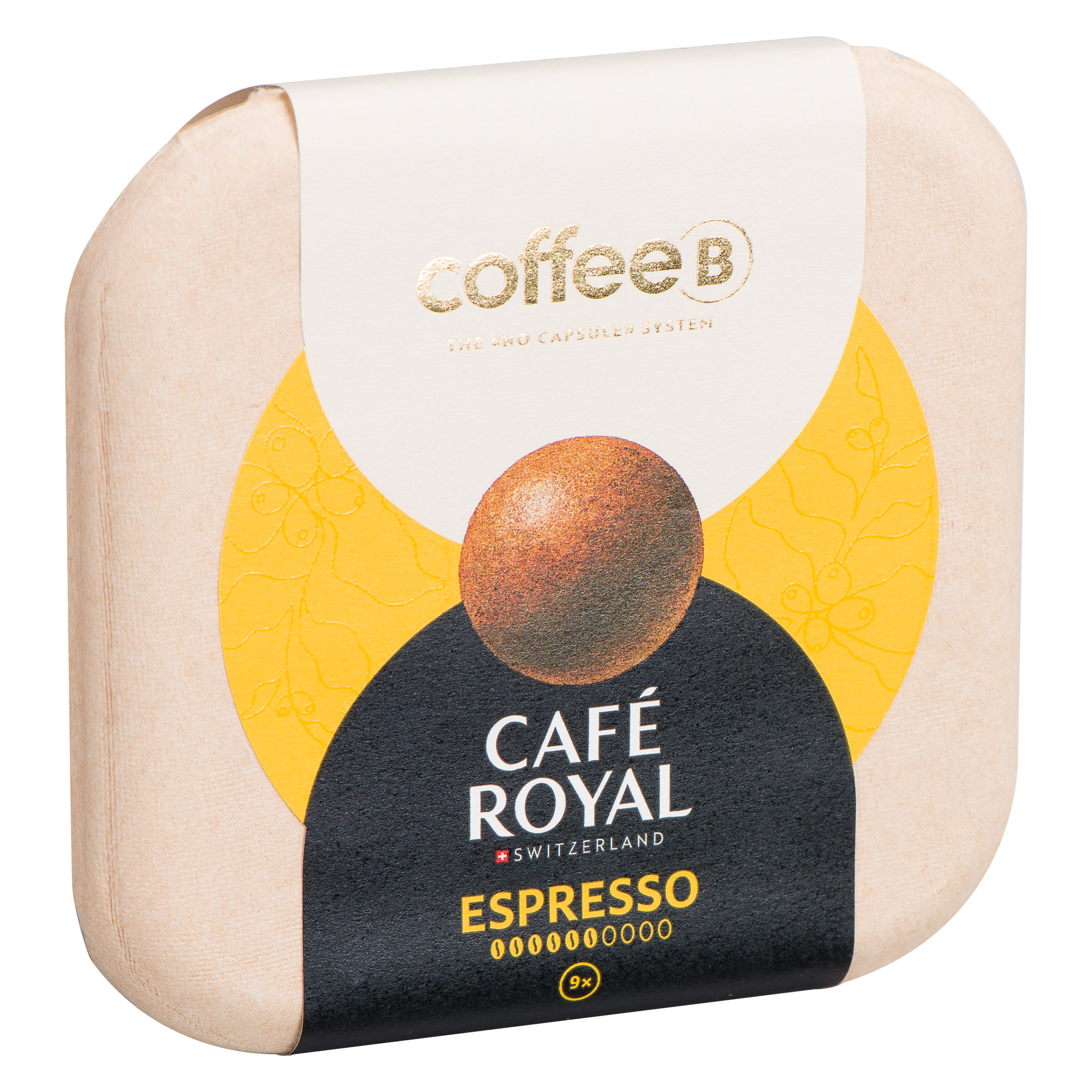 The coffee is freshly roasted and ground near the Rhine. The ground coffee is first compressed into a ball, then wrapped in a protective layer of natural origin. The protective layer preserves the coffee's aroma even after opening the packaging and provides stability to the coffee ball.