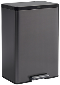 Detailled descriptionAnthracite, en acier inoxydable, avec pédale sur le grand côté, rectangulaire, fermeture lente du couvercle, avec 2 bacs de couleur, avec fonction de verrouillage, dimensions: (L)504 x (P)393 x (H)730 mm
