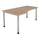 Laminated chipboard thickness 25 mm.Schock resistant ABS borders, thickness 2 mm, slanted ends. Height of top is adaptable between 68 and 76 cm. Side panels (optional) in chipboard with aluminium colored finish. Undercarriage in aluminium lacquered metallic tube structure. Undercarriage is adaptable in height with cylinders. Cable duct under the top (optional).