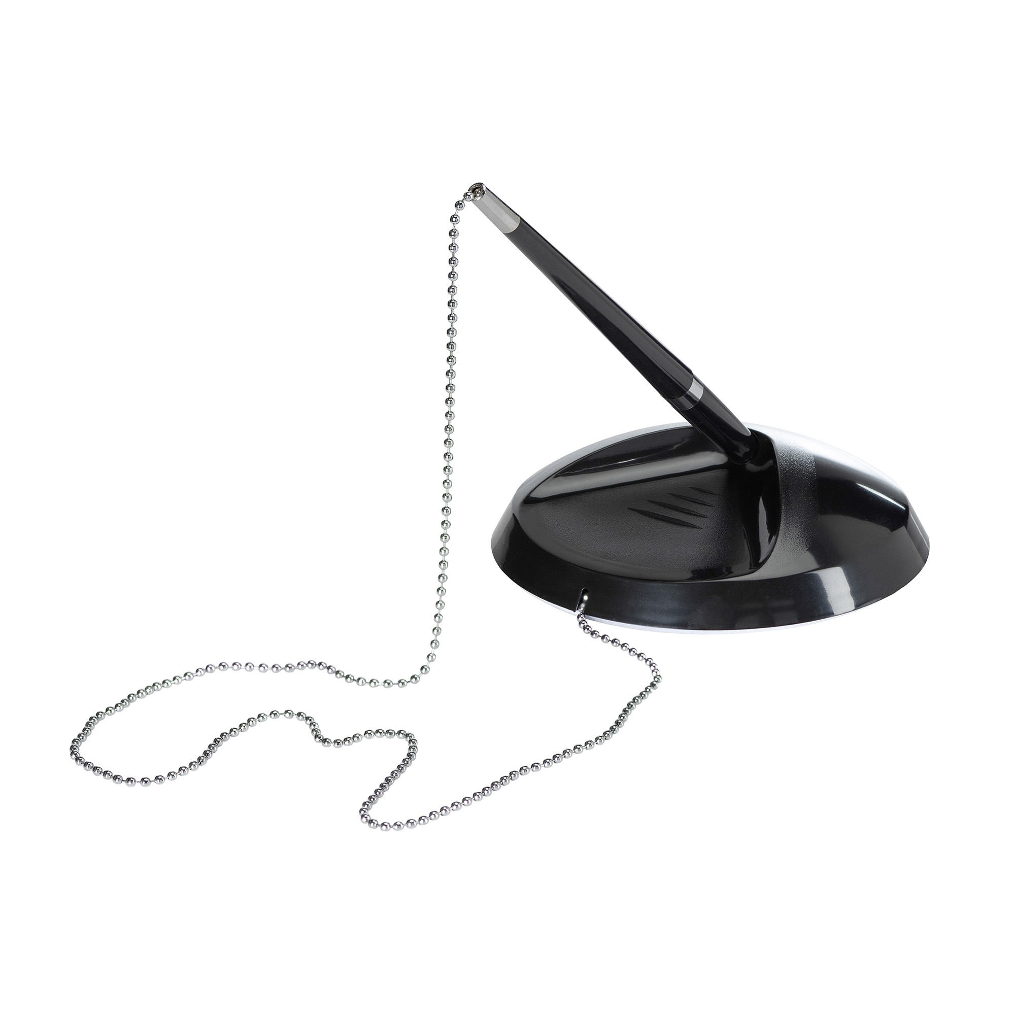 Detailled descriptionAnti-theft: weighted soccle in ABS 300 g with adhesive for fixing. Chain 50 cm blue refill supplied 1) pen color: ivory-black-burgundy 2) ink color: black-blue